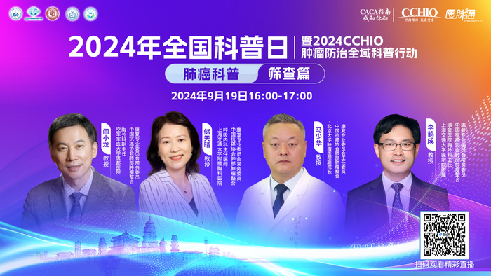 中国抗癌协会肺部肿瘤整合康复专业委员会联合医脉通平台,特此策划了2024年全国科普日暨二024CCHIO肿瘤防治痊愈科普行动系列直播活动。